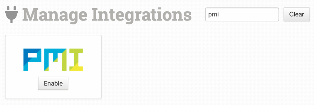 To connect to PMI, click on the Manage Integrations link in the left sidebar. Under the Print on Demand tab find and enable PMI.