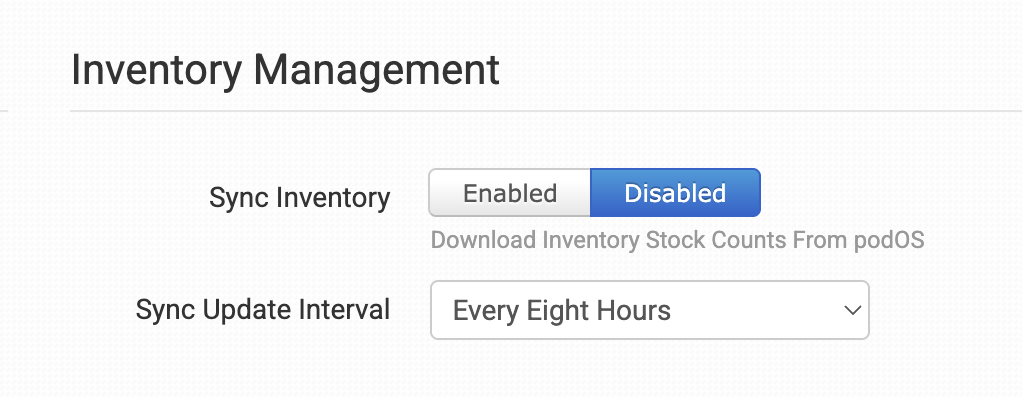 Choose whether to have Order Desk regularly download products and their stock counts from podOS.
