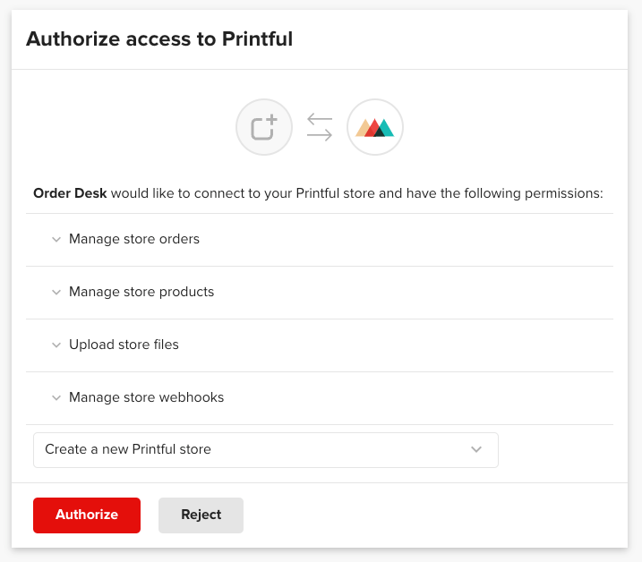 You will be redirected to Printful to confirm you’d like to give Order Desk access. In order to authorize your connection, you must be logged into your Printful account as an Admin/Owner.