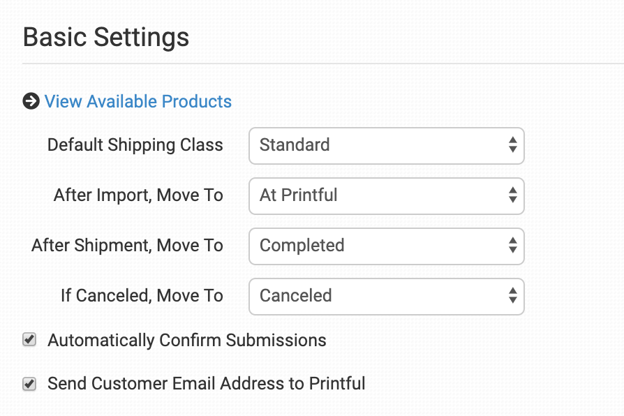 For more information on what the product settings within the Printful integration do, please read the Print on Demand Product Settings guide.