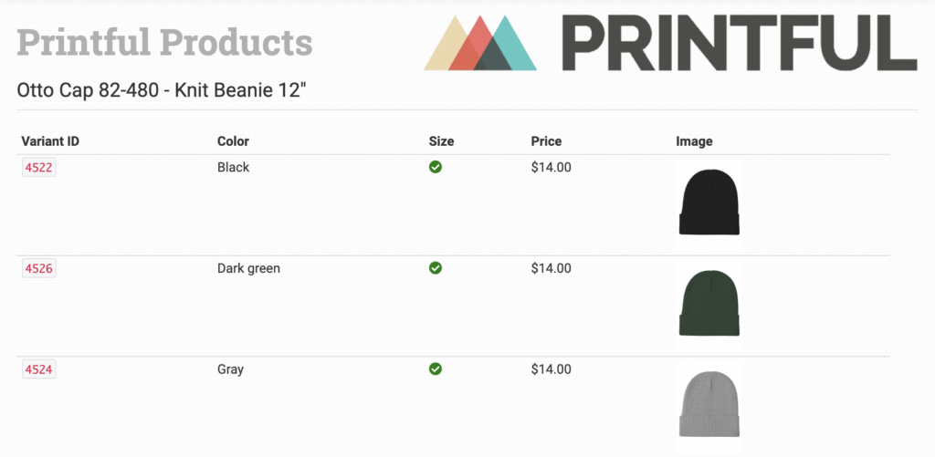 | print_sku | Printful’s Variant ID. See below for instructions. |