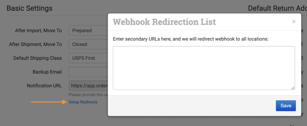 Copy this URL and paste it into the Setup Redirects field in your main store. Add one URL per line, making sure all notification URLs from your other Order Desk stores are included.