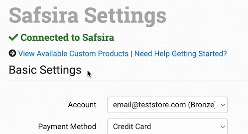 Select the payment method you’d like to use for your Safsira orders. Please note that the available payment methods must be set up in your Safsira account.