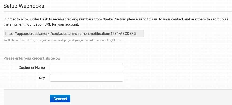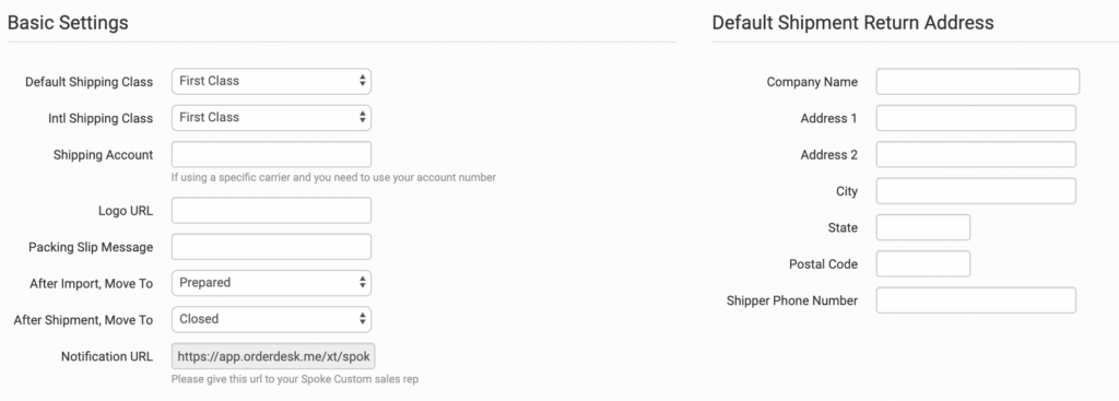 Give this notification URL to Spoke Custom. They will use it to connect to your Order Desk account and send shipment details back to your orders automatically.