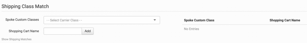 The shipping methods that you have set up in your shopping cart(s) may not match the methods that Spoke Custom uses. To make sure your shipping preferences are sent through to Spoke Custom with each order, match your methods to theirs in the shipping class match feature.