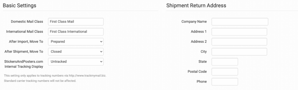 Set the default return address that StickersAndPosters.com should use on your shipments.