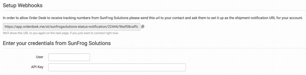 Please note that Order Desk isn’t able to help find or reset your credentials, as they can only be provided by SunFrog Solutions.