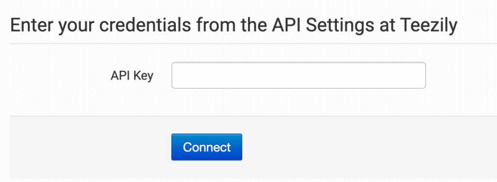 Once enabled, enter your Teezily API Key to make the connection.