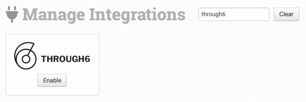In Order Desk, click on Manage Integrations in the left sidebar. Under the Print on Demand tab, find and enable the Through6 integration.