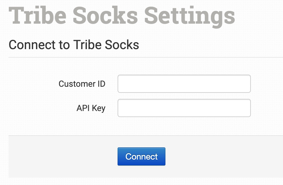 Once enabled, enter your Tribe Socks Customer ID and API Key to connect.