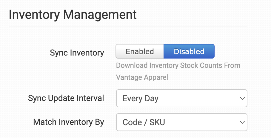 Enable if you want Order Desk to regularly fetch your stock counts from Vantage Apparel.