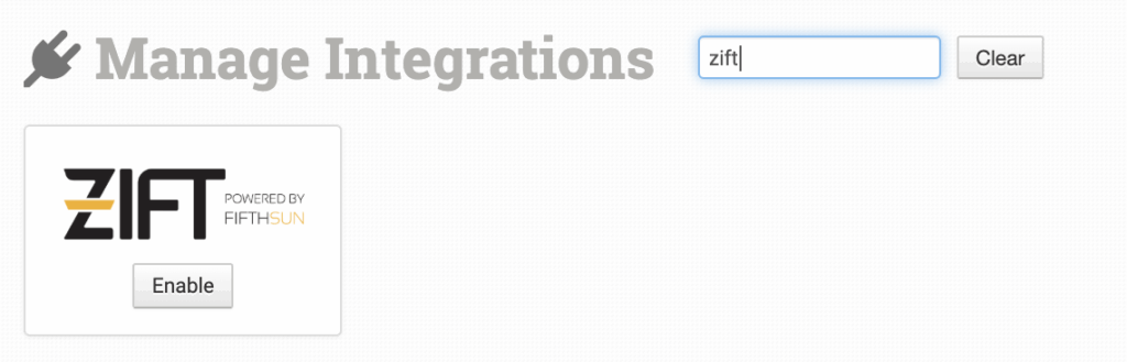 To enable the integration, click on Manage Integrations in the left sidebar. Under the Print on Demand tab, find and enable the Zift integration.