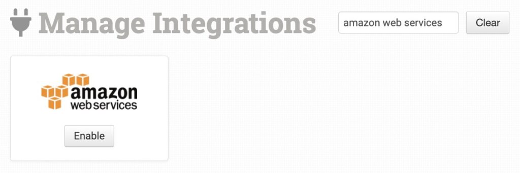 Alternatively, search for Amazon Web Services from the available integrations search.