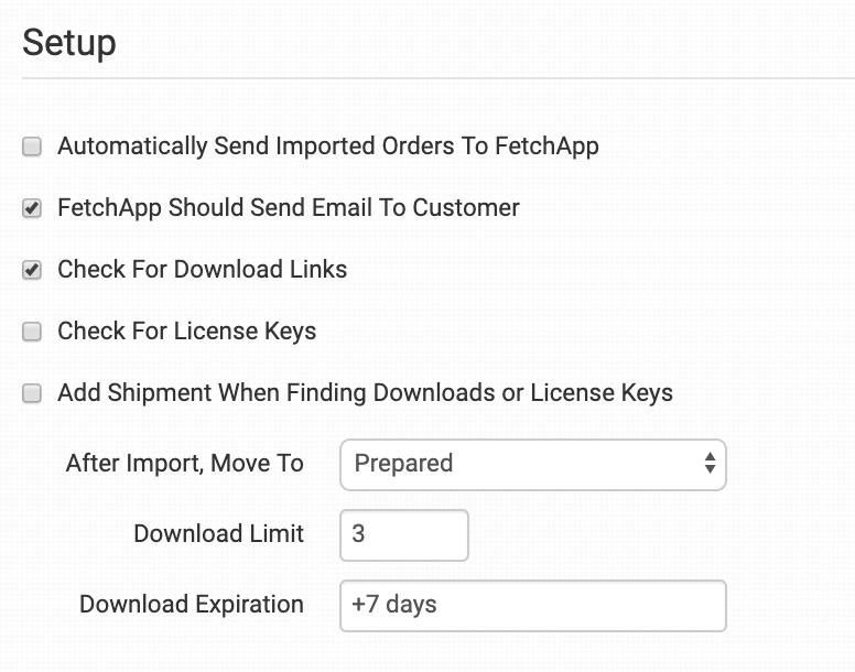 Select if you want FetchApp to email the customer with their download links or license keys. If not selected, you will need to communicate this information to the customer another way.