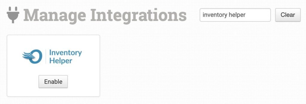 To enable Inventory Helper, click on Manage Integrations from the Integrations menu in the left sidebar. You will find it under the Productivity tab.