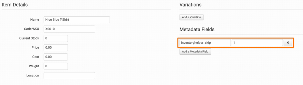 If you’d like to skip processing on an item in your inventory, use the inventoryhelper_skip field with a value of one: