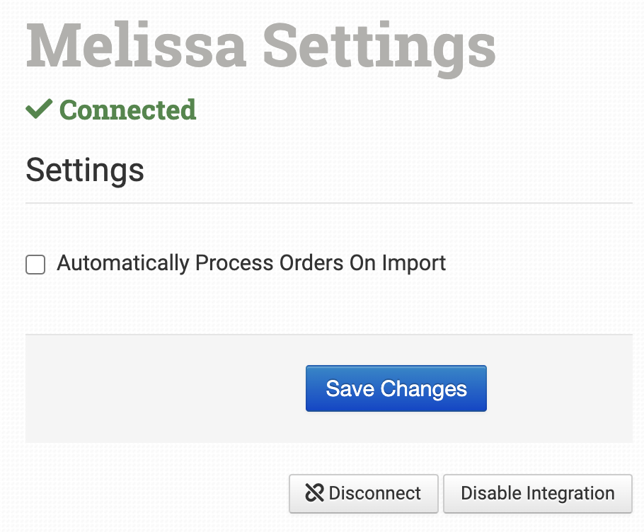 After entering your License Key, you can enable the Melissa connection with Order Desk.