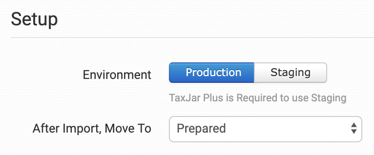 Select Production for sending live orders and Staging for sending test orders to TaxJar.