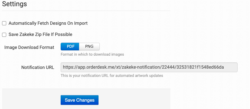 Add this URL to your Zakeke account in the Webhooks > Order Generated Endpoint section. This allows Zakeke to notify Order Desk when an order is ready.