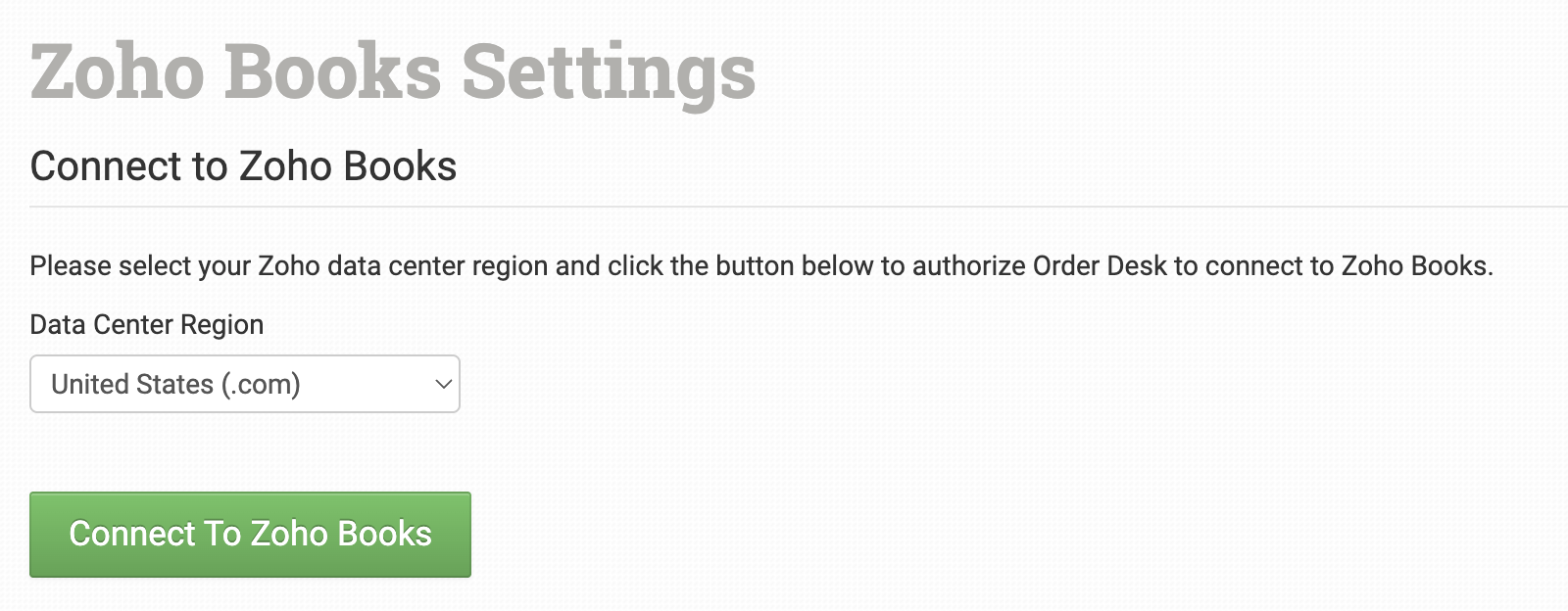 On the next screen, select your data center region from the dropdown and click Connect to Zoho Books.