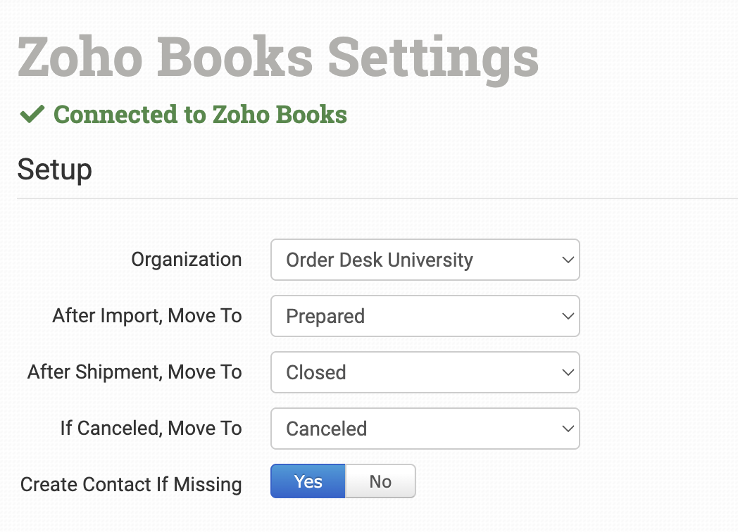 Submit Order to Zoho BooksSends an order from Order Desk to Zoho Books.