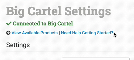 Click Need Help Getting Started? for access to helpful resources for using Big Cartel.