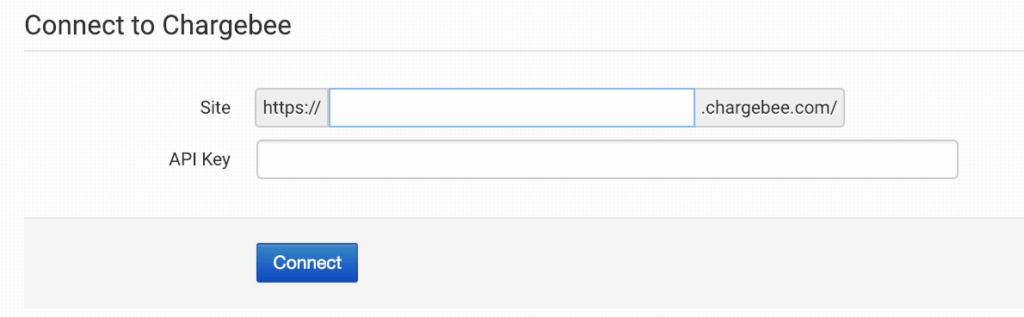 To finish the connection, you will kneed a Chargebee API Key, which can be created within your Chargebee account on the settings page.