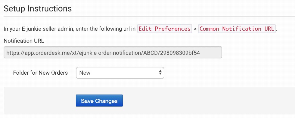 Once enabled, copy the Notification URL and paste it into your E-junkie seller admin in Edit Preferences > Common Notification URL.