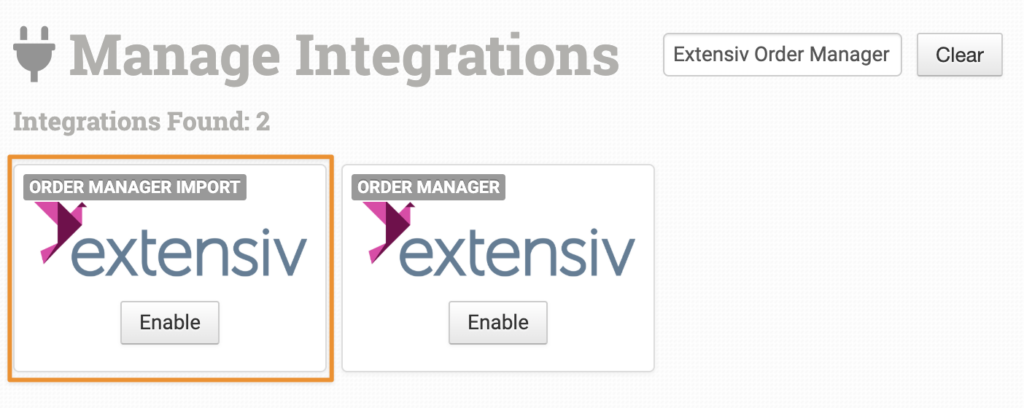 Alternatively, search for Extensive Order Manager from the available integration search, then Enable the Import integration.