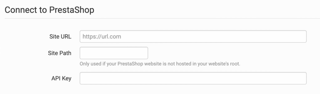 To connect Order Desk to your PrestaShop account, enter your Site URL without the /api/ at the end, as this is added automatically by Order Desk.