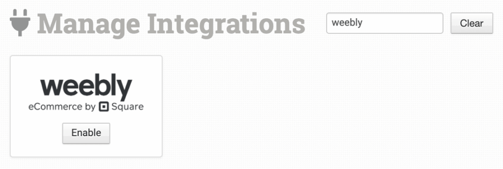 To begin, click on Manage Integrations from the left sidebar in Order Desk. Under the Shopping Carts tab, find and click to enable Weebly.