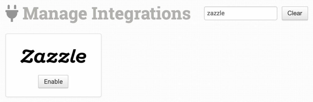 In Order Desk, click on Manage Integrations under the Integrations menu in the left sidebar. Under the Shopping Carts tab, find and enable Zazzle.