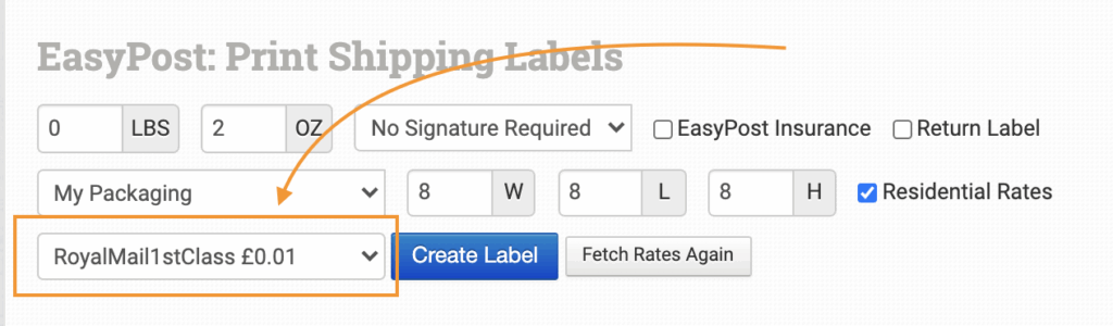 When you have a Shipping Class Match set up for EasyPost, you’ll see it available as an option when you’re creating your shipping label.
