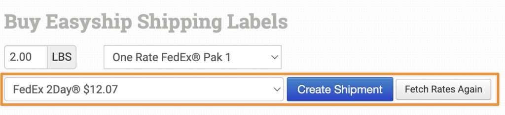 Rates will be populated in a new dropdown box for you to choose before creating a label. If you need to, you can edit the settings and fetch the rates again.