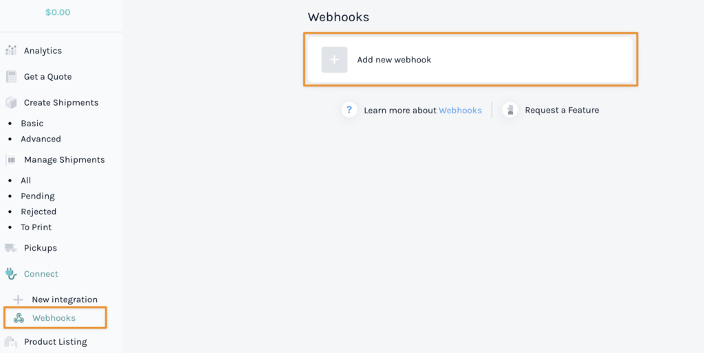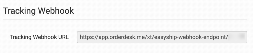 Copy the Tracking Webhook URL provided on the integration settings page and add it to your Easyship account under the Webhooks section. This allows Order Desk to receive updates about the status of your shipments.
