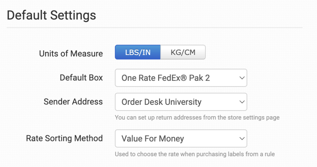 These settings let you define how labels are created and how rates are selected when using Easyship through Order Desk. The values you set here will apply by default, but you can further customize them on an order by order basis.
