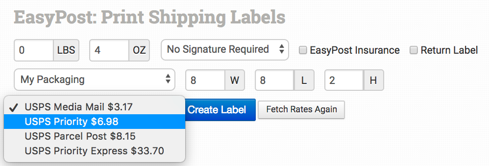 If you need to, you can edit the settings and fetch the rates again before creating the label.
