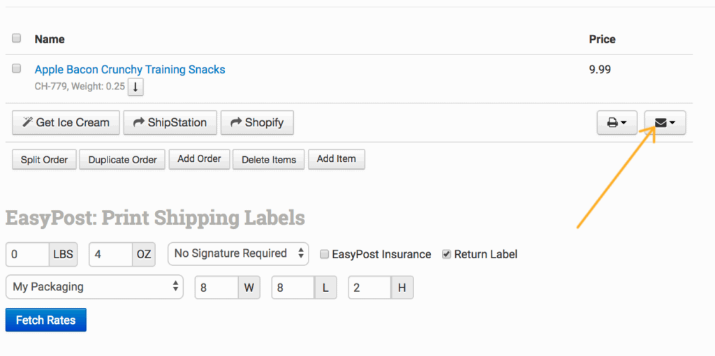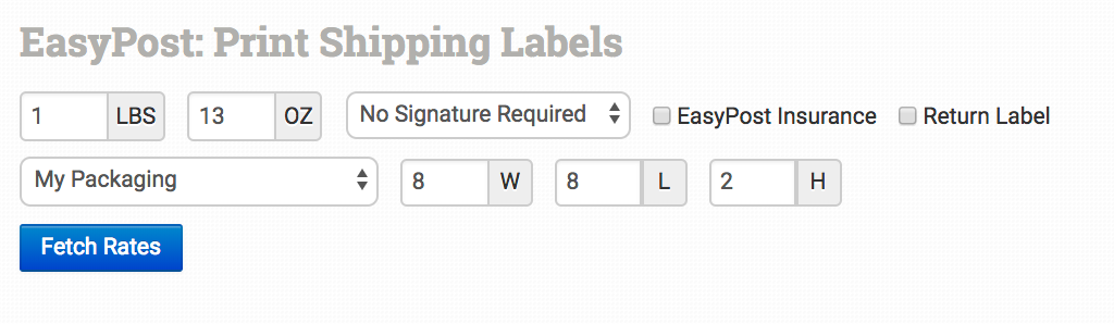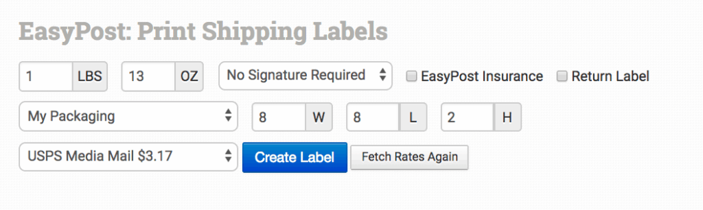 When the EasyPost integration is enabled, an EasyPost label creator will display beneath the product details on every order.