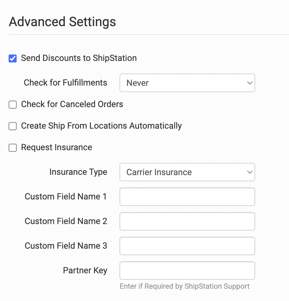 By default, all discounts will be sent to ShipStation as adjustment line items. If you do not want discounts to be sent to ShipStation, uncheck the Send Discounts to ShipStation option. Discounts must be over $0.01 to be sent.