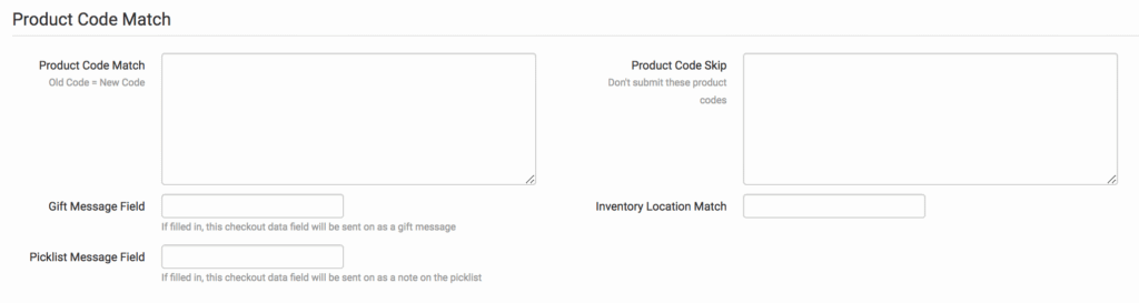 The Product Code Match feature allows you to tell Order Desk when certain product SKUs need to be changed before orders are sent for fulfillment. Add one match per line with bundles separated by commas. For more information on how to set this up, see this guide.