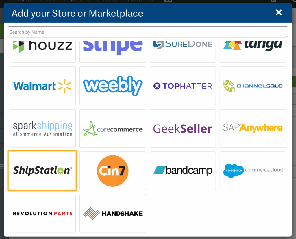 Scroll through the options and find the ShipStation button (or type ShipStation in the Search by Name field):