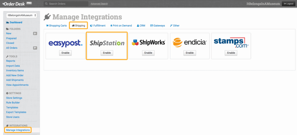 Back in Order Desk, if you haven’t already, you’ll need to enable the ShipStation integration.