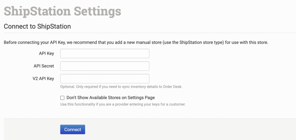 If you’d like Order Desk to download stock counts from your ShipStation account as well, you’ll need to generate a separate API v2 key in addition to your current API key.