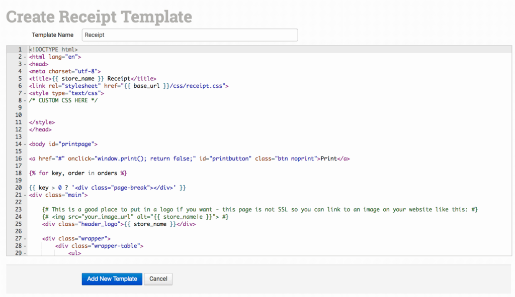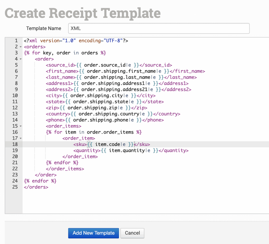 Copy the code from this template to paste into your Order Document, rename the template and then click Add New Template to save it, like so: