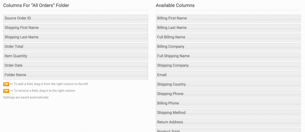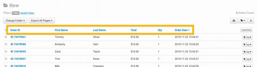In Order Desk, your folders have columns that provide an overview of the information in each order. These columns can be rearranged, changed or customized to display specific information in the orders.