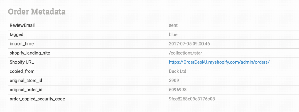 Order metadata is found at the bottom of the order details page.