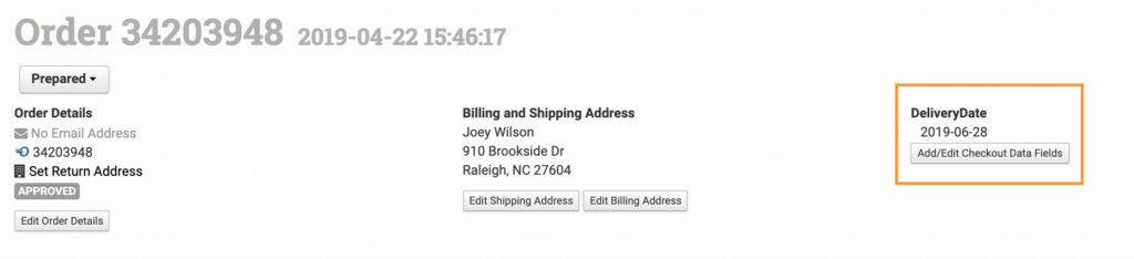 Checkout data is found at the top right corner of the order details page: