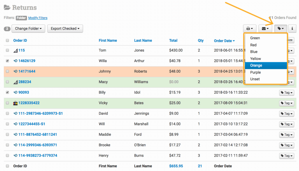 There are a number of ways to mark an order in Order Desk as being a return. This guide goes over these options in more detail, but some of the ways to mark a return are to use a specific tag color to signify returned orders, create a custom folder for returns or add order notes to provide more information about the order and its return status.