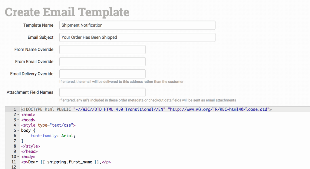 The default email template added in Order Desk is the shipment notification template: