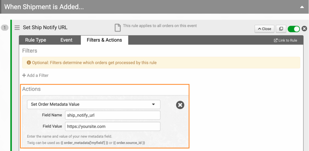 Order Desk will send the shipment details to this URL when they are added to the order.